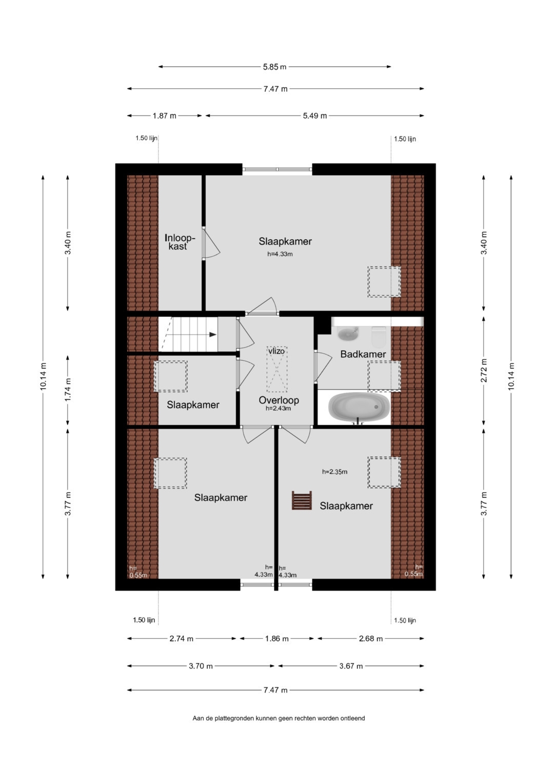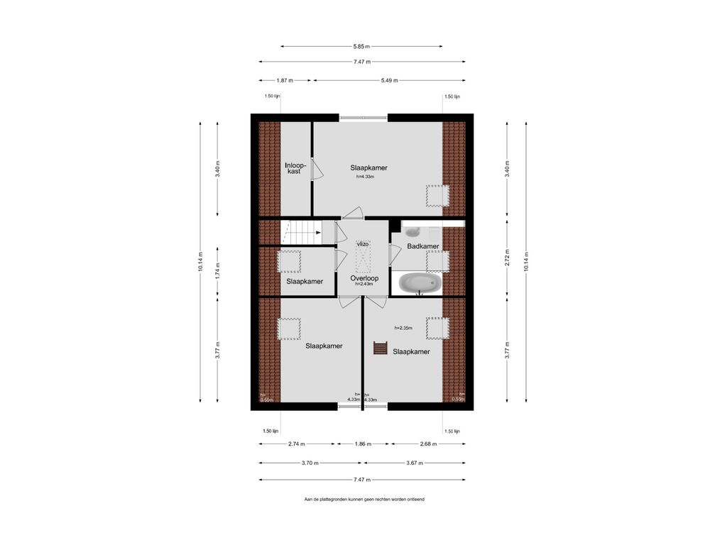 Rond de centrale overloop zijn 3 slaapkamers en een badkamer gelegen. Alle slaapkamers hebben lichtinval door zowel een zijraam als een dakraam. De badkamer is voorzien van een bad/douchecombinatie, een wastafel en een 2e toilet.