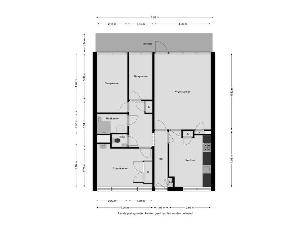 Tevens is er vanuit de hal toegang naar de badkamer en het toilet. De badkamer is voorzien van een douchehoek en de wasmachine-opstelling.