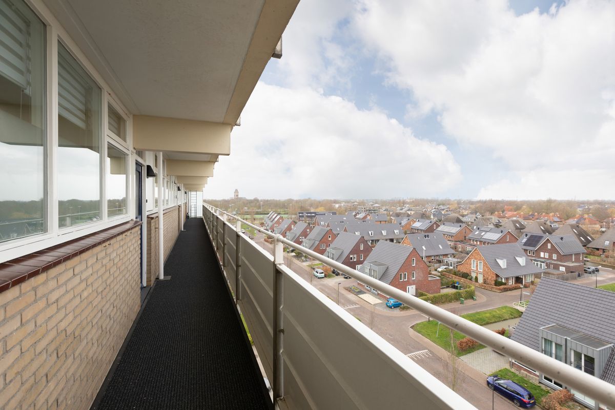 Entree, hal, centrale hal, met trapopgang en liftinstallatie. Vanaf de galerij is er toegang naar de hal met meterkast. De woonkamer is royaal opgezet en heeft toegang naar het balkon. Dit ruime balkon is op het zuiden gelegen en heeft een prachtig vrij uitzicht over een speelveld en de landerijen. De open U-vormige keuken is voorzien van een groot werkblad en voorzien van inbouwapparatuur. De overige ruimtes zijn allemaal gesitueerd rond een centrale hal. De grootste slaapkamer ligt aan de galerijzijde en heeft een vaste kast met plaats voor de elektrische boiler. De overige 2 slaapkamers bevinden zich aan de balkonzijde. De badkamer is geheel betegeld en voorzien van een inloopdouche, een wastafelmeubel en designradiator. Er is een separate toiletruimte met fonteintje.