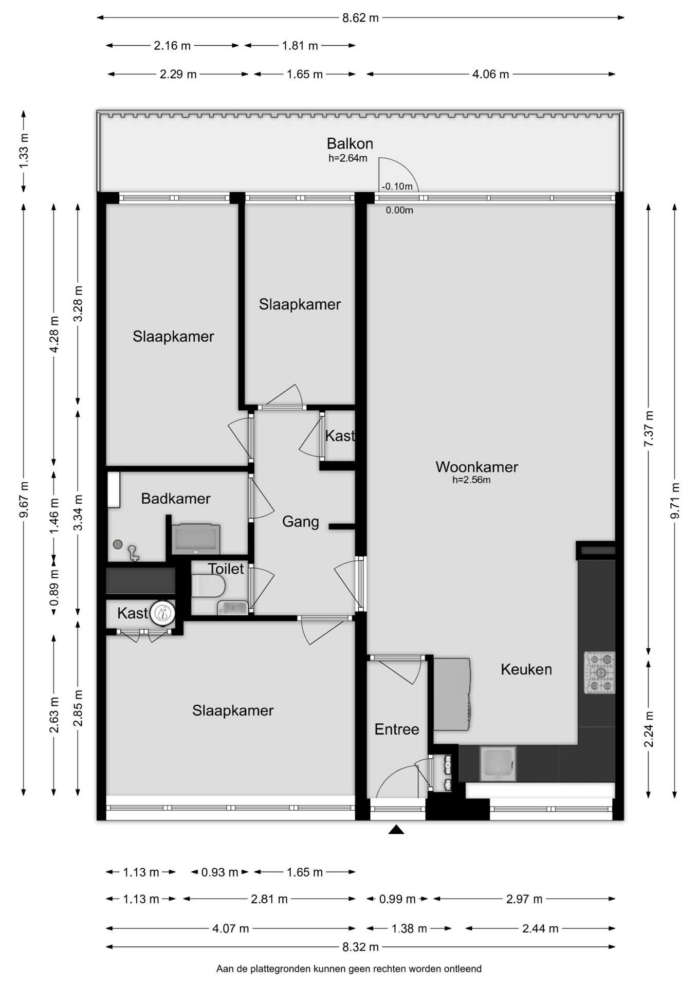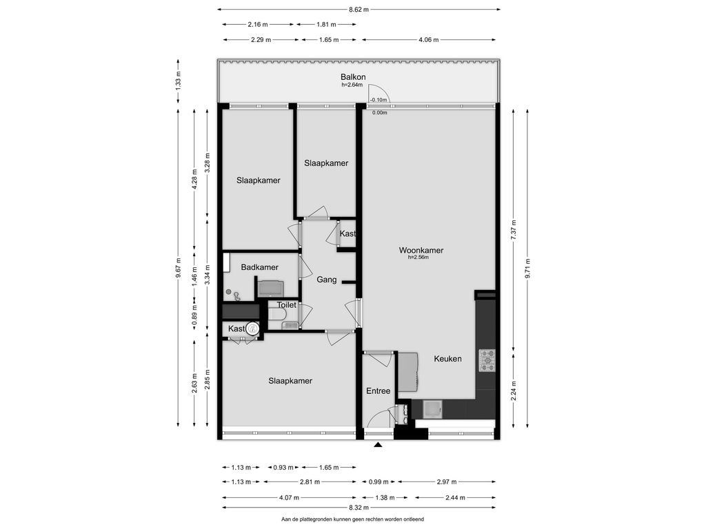 * 3 slaapkamers;