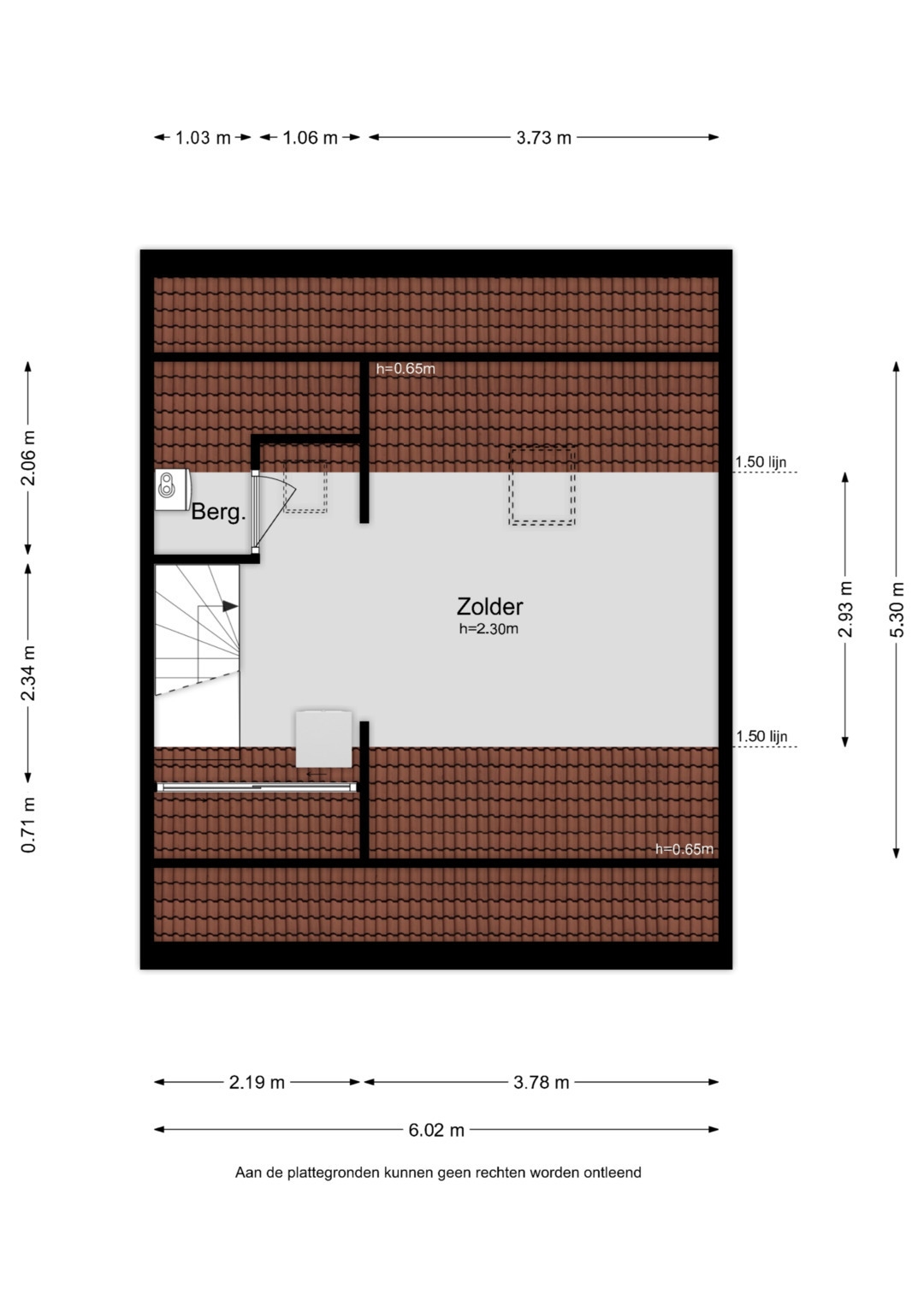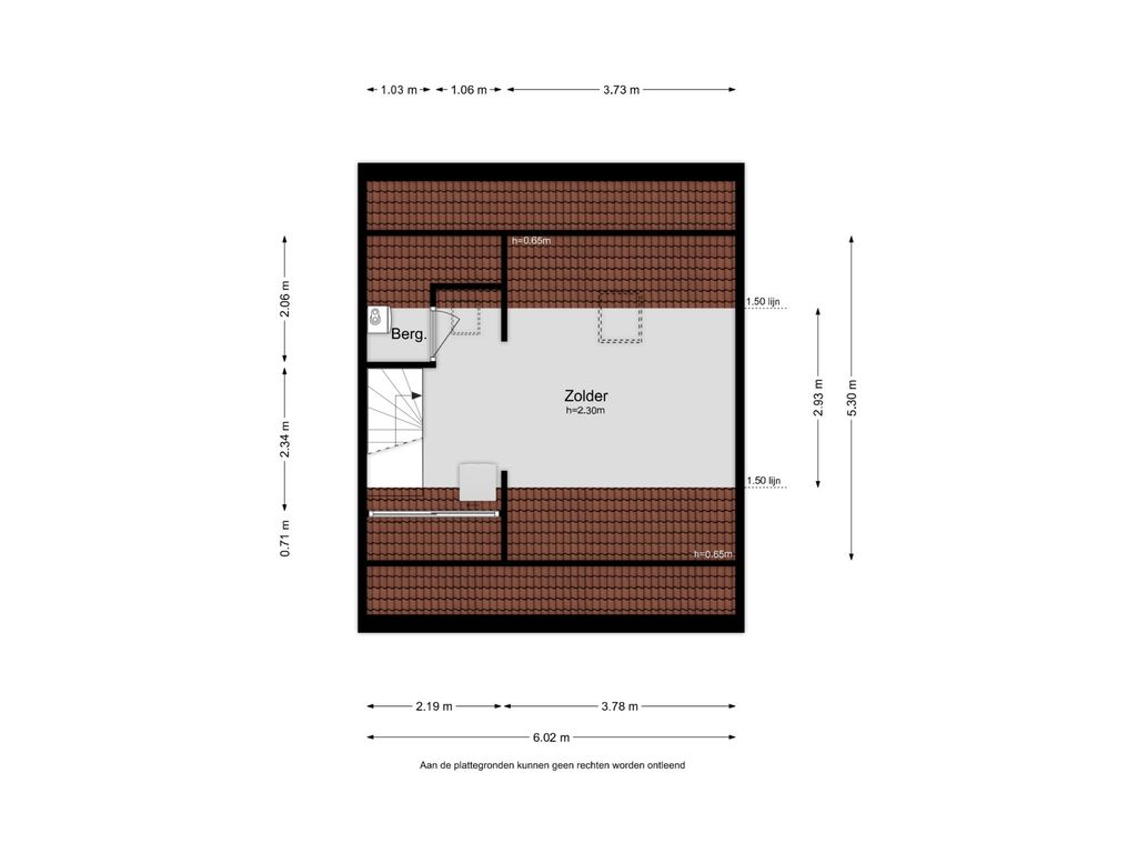 Ook de 2e verdieping is bereikbaar middels een vaste trap. Hier is een ruime zolderkamer gerealiseerd met groot dakraam. Bij de trap is een vaste kast met de cv-installatie. Aan de andere zijde bevindt zich de wasmachine-aansluiting.