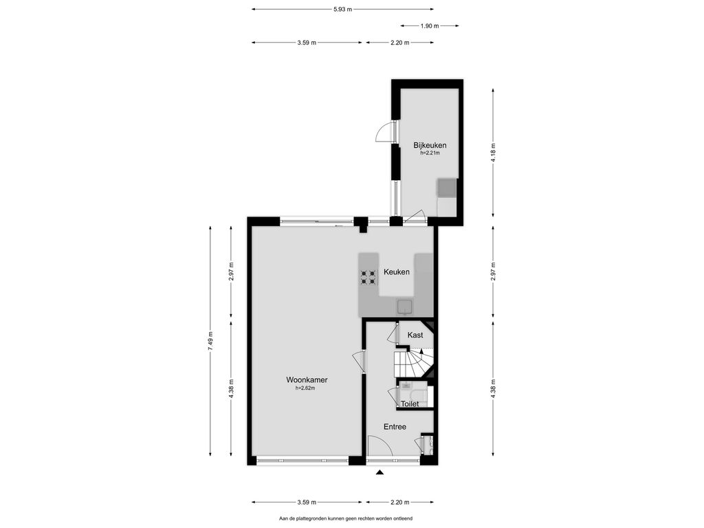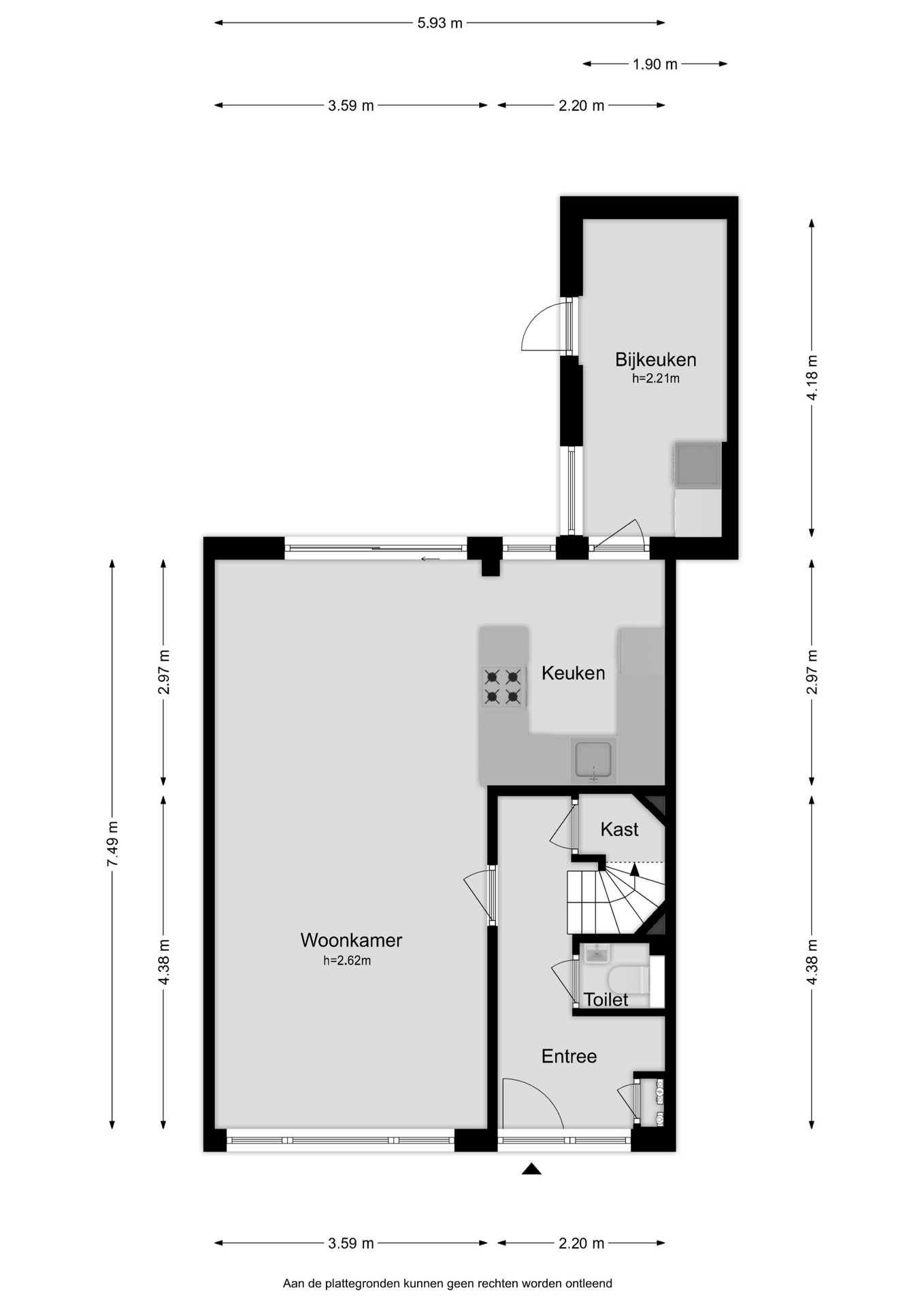 Entree, hal, meterkast, toilet, trapopgang en een vaste bergkast. De woonkamer is uitgevoerd in lichte kleurstellingen. De grote raampartij aan de voorzijde en de schuifpui met toegang naar het zonnige terras zorgen voor veel lichtinval. De open keuken is voorzien van diverse inbouwapparatuur en een kookschiereiland met ontbijtbar. In de aangebouwde bijkeuken is ruimte voor de witgoedopstelling en bergkasten. Vanuit de bijkeuken is er toegang naar de ruime achtertuin met houten tuinschuur. Er is een vrij achterom via de achtergelegen steeg.