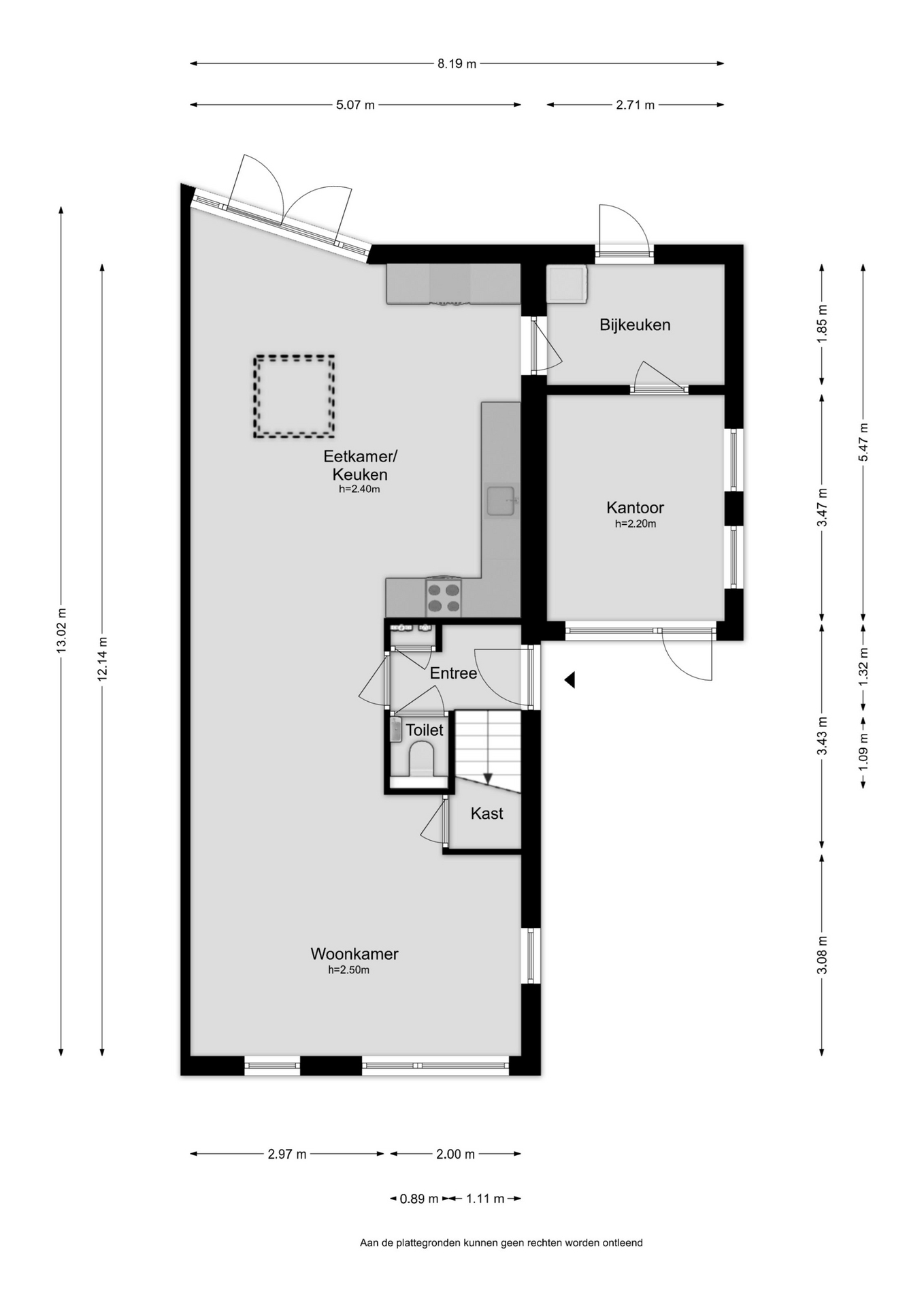 Entree, hal met meterkast, toilet en trapopgang eerste verdieping.
