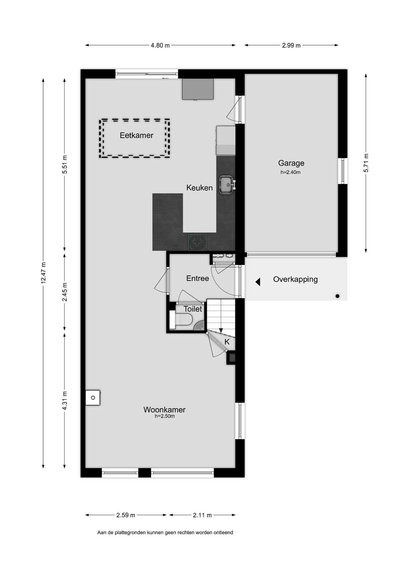 * Garage met kapconstructie en geïsoleerde betonvloer;