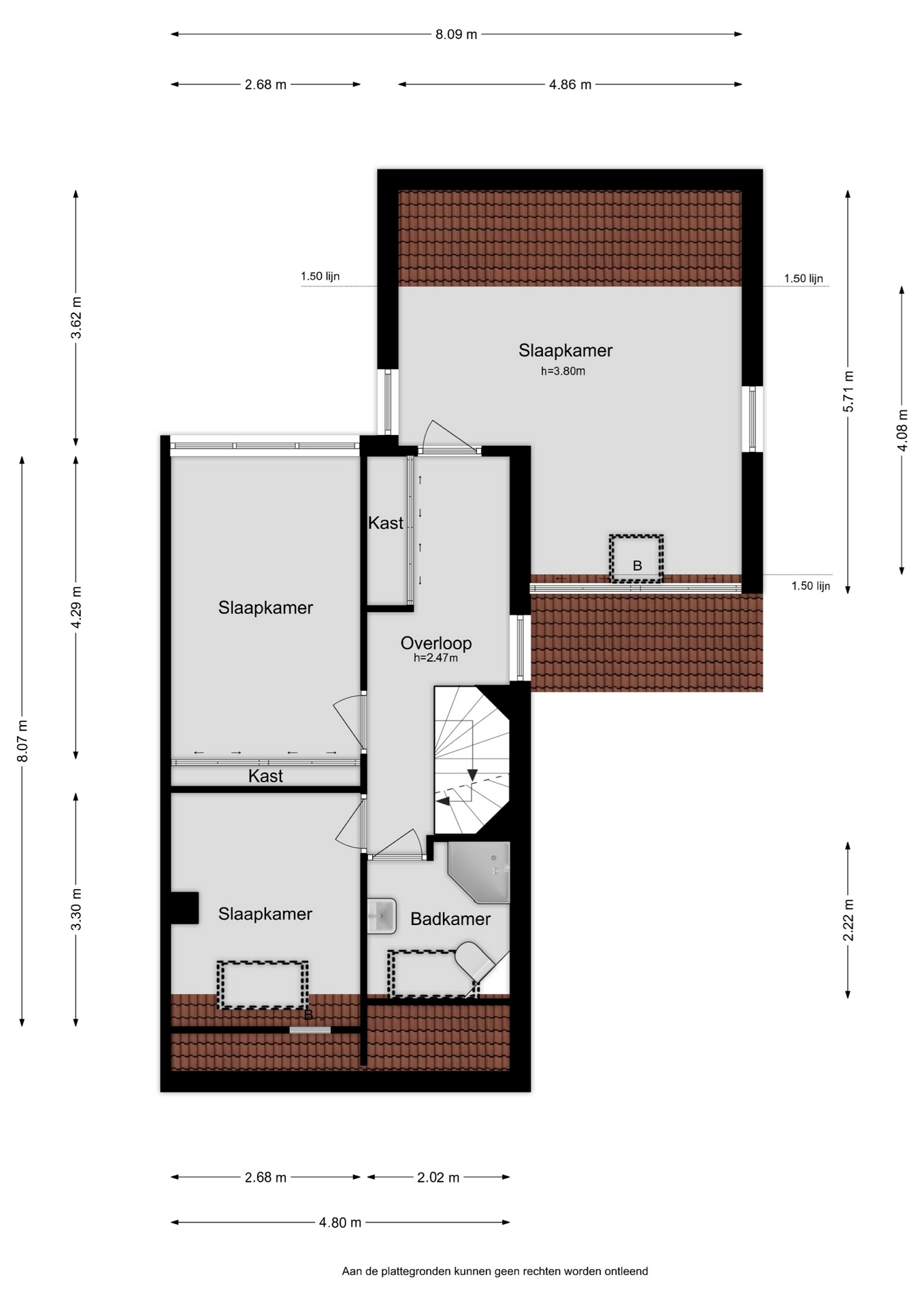 De 2e verdieping is bereikbaar via een vaste trap. Hier bevinden zich de wasmachine-aansluiting en de cv-installatie. Deze verdieping beschikt over 2 dakvensters en desgewenst kan hier een 4e slaapkamer worden gerealiseerd.