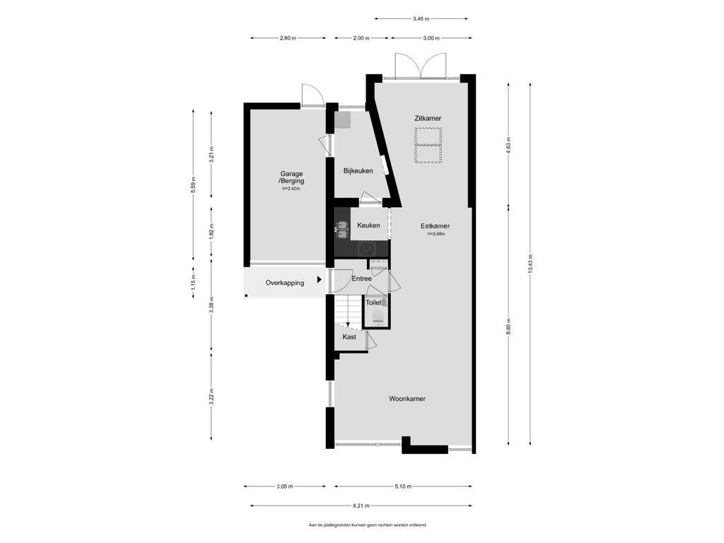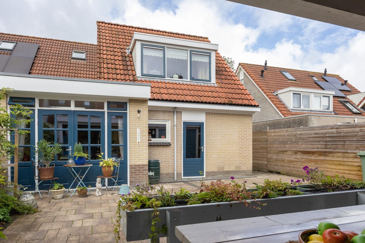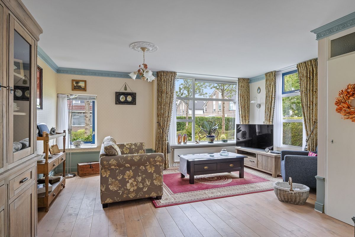 Entree, hal, meterkast, toilet. De ruime woonkamer aan de voorzijde van de woning heeft een mooie raampartij, waardoor er veel lichtinval is en uitzicht op de straat. Door de uitbouw aan de achterzijde is een ruime tuinkamer ontstaan met een dakvenster en openslaande deuren naar de achtertuin. De keuken bevindt zich in het midden van de woonkamer. De landelijke hoekopstelling beschikt over inbouwapparatuur en praktische bovenkastjes. In de achterliggende bijkeuken is ruimte voor de witgoedopstellingen. De ruime garage is voorzien van een garagedeur, een tuindeur en een deur naar de bijkeuken.
