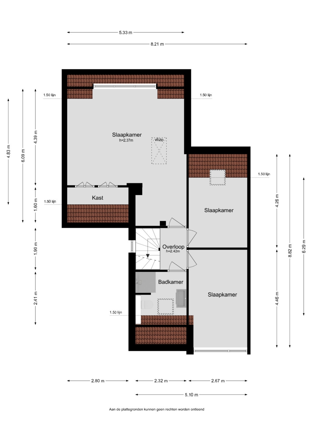Vanaf de centrale overloop is er toegang naar de badkamer en 3 slaapkamers. Door de dakkapel aan de voor- en achterzijde beschikt deze verdieping over grote kamers met veel lichtinval. De royale ouderslaapkamer ligt aan de achterzijde boven de bijkeuken en garage. De 2 andere slaapkamers hebben ook beide 2 persoons afmetingen. De moderne badkamer is voorzien van lichte kleurstellingen en beschikt over een douche, toilet en wastafelmeubel.