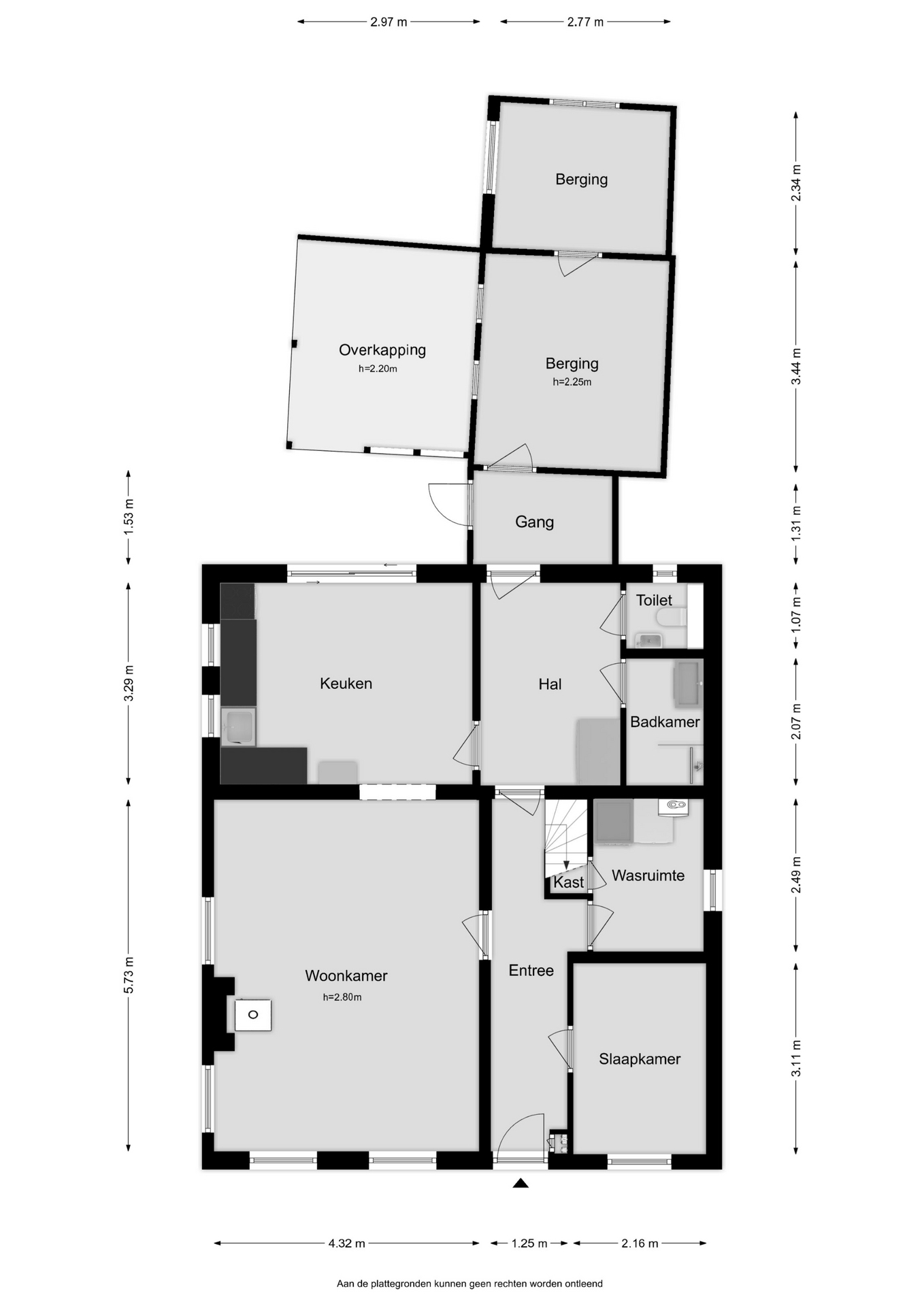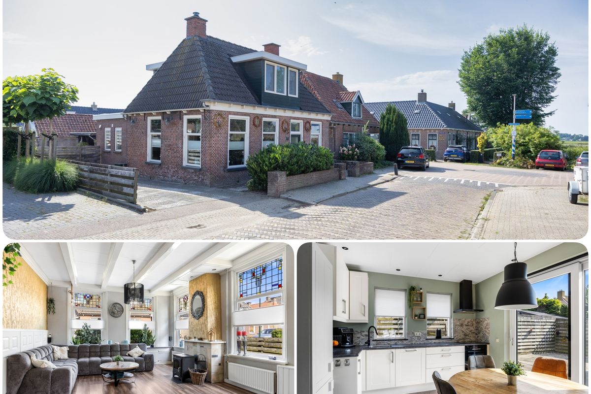 Entree, gang, meterkast en trapopgang. De sfeervolle woonkamer heeft een balkenplafond, een schouw met houtkachel en bovenramen met kleurige glas-in-loodramen. Via een open doorgang is er toegang naar tuingerichte eetkeuken. De hoekkeuken is voorzien van inbouwapparatuur, waaronder een inductiekookplaat. De grote schuifpui en de zijramen zorgen voor lichtinval. Naast de keuken is een ruime tussenhal met toegangsdeuren naar de keuken, de gang, het moderne toilet, de badkamer en het klompenhok bij achteringang. De moderne badkamer is geheel betegeld en voorzien van een douchehoek en een wastafel.