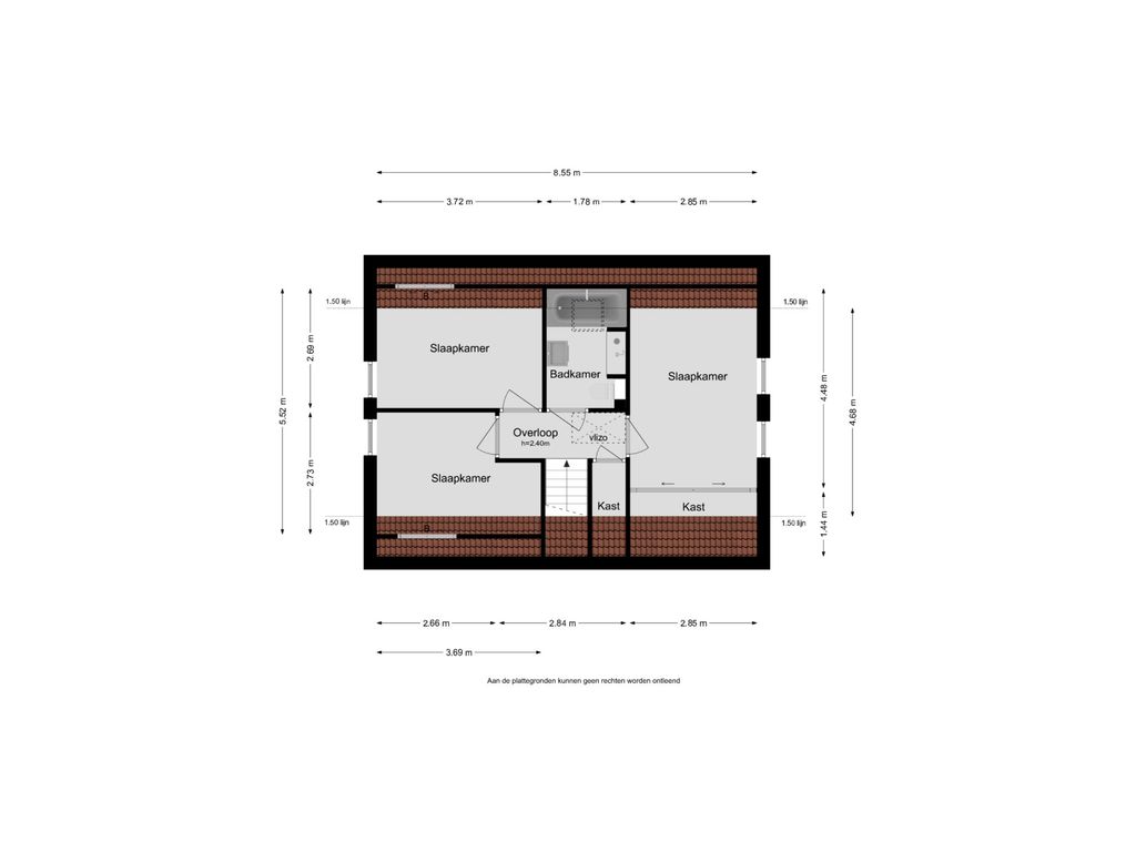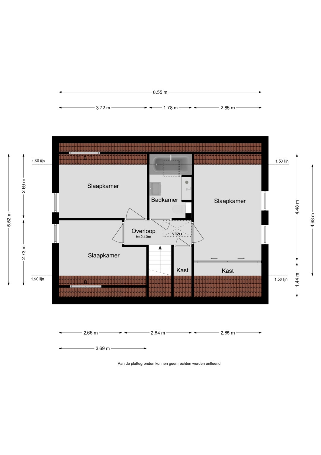 De verdieping beschikt over een centrale overloop, 3 slaapkamers, een bergkast en een complete badkamer. De badkamer is voorzien van lichte kleurstellingen en beschikt over een ligbad, toilet, wastafelmeubel en een douche. De masterbedroom beschikt over een inbouwkast over de hele breedte van de slaapkamer.