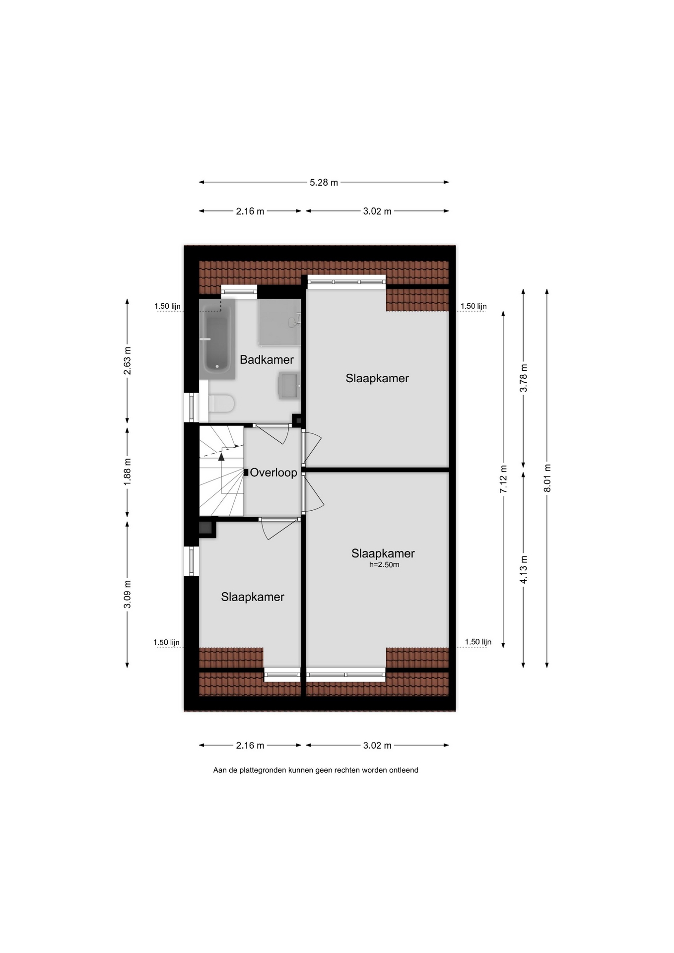 De eerste verdieping beschikt over een centrale overloop, een badkamer en 3 slaapkamers. De 2 dakkapellen zorgen voor extra ruimte en lichtinval in de slaapkamers. De moderne badkamer heeft een praktische indeling en is zeer compleet met een ligbad, douche, 2e toilet en een wastafel.