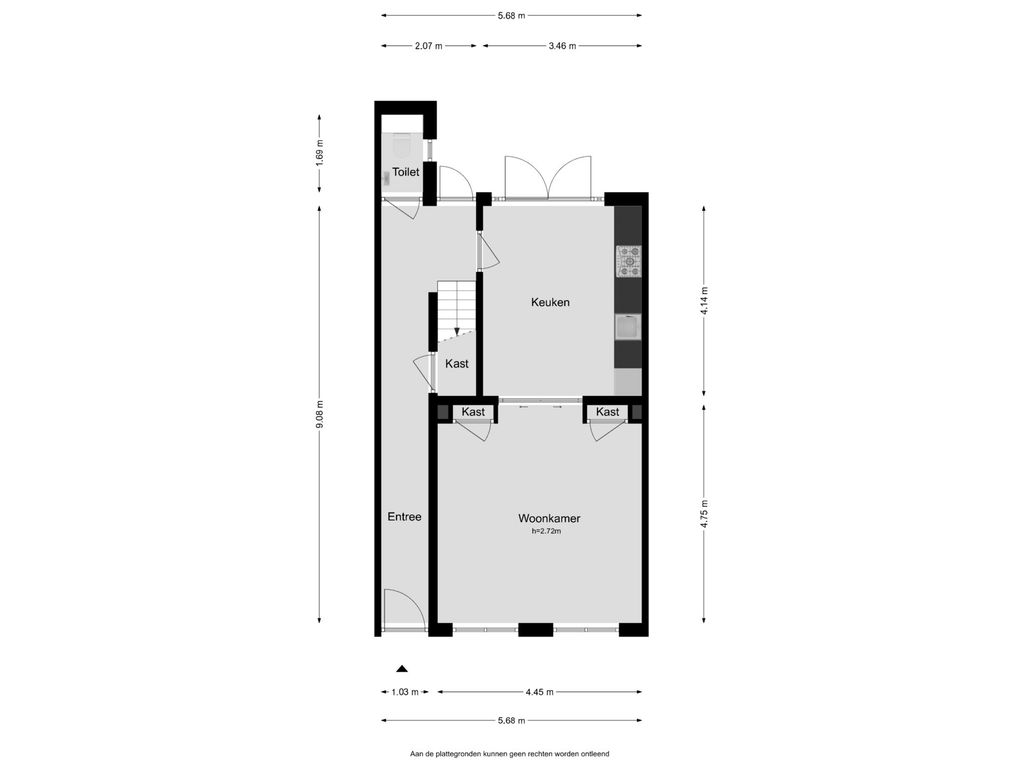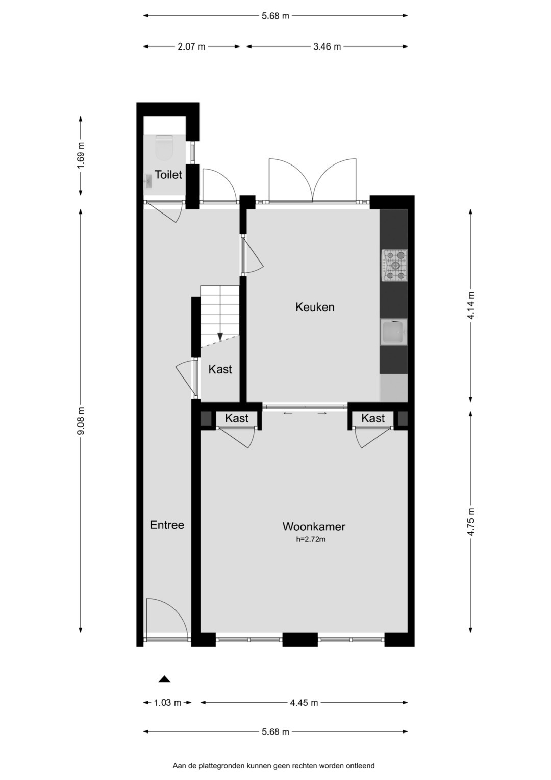 Entree, hal met oude vloertegels, trapkast, trapopgang en een toilet. De woonkeuken heeft praktische afmetingen met openslaande deuren naar de achtertuin, een keukenblok in wandopstelling en voldoende ruimte voor een grote eettafel. De keuken is voorzien van diverse inbouwapparatuur, waaronder een 5-pits fornuis. De suitedeuren scheiden de woonkeuken van de ruime woonkamer met vaste kasten. Kenmerkend voor deze beide ruimtes zijn de hoge plafonds en de grote raampartijen met veel lichtinval. De woning beschikt over een diepe achtertuin van ca. 30 meter met een stenen berging en een sfeervolle veranda.