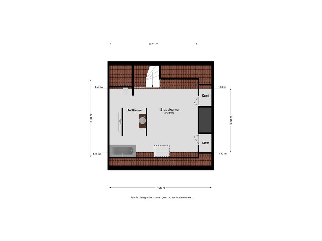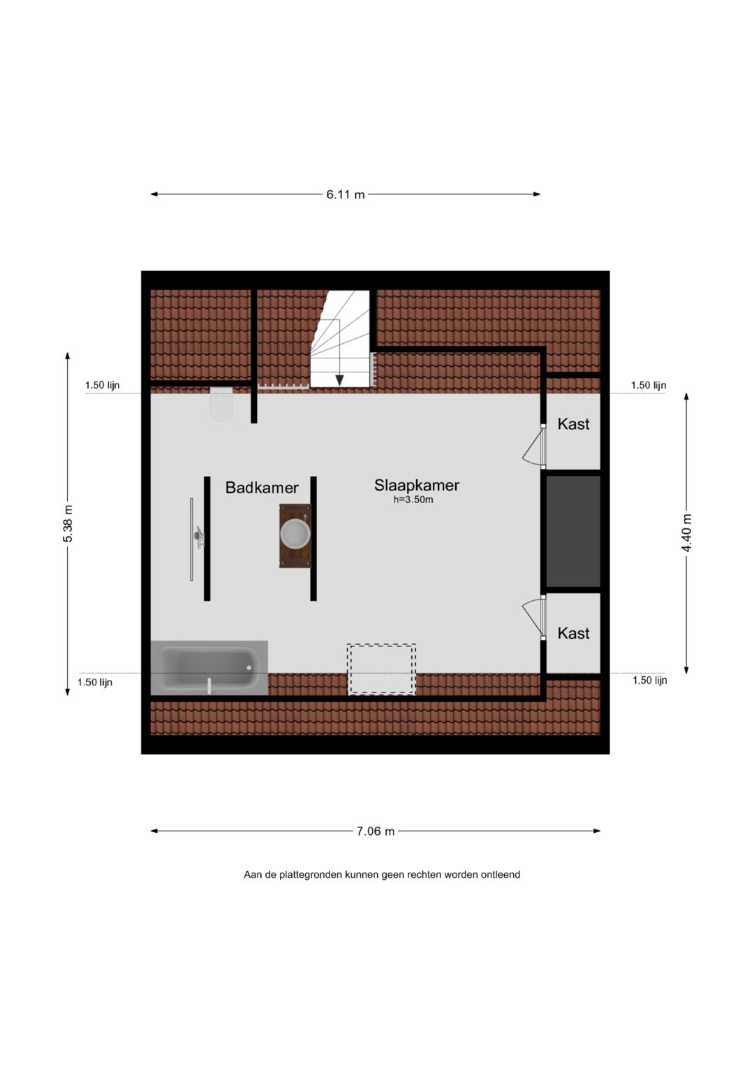 De badkamer is voorzien van een ligbad, 3e toilet, wastafelmeubel en een inloopdouche. Aan de beide zijden van het bed zijn vaste kledingkasten aanwezig.