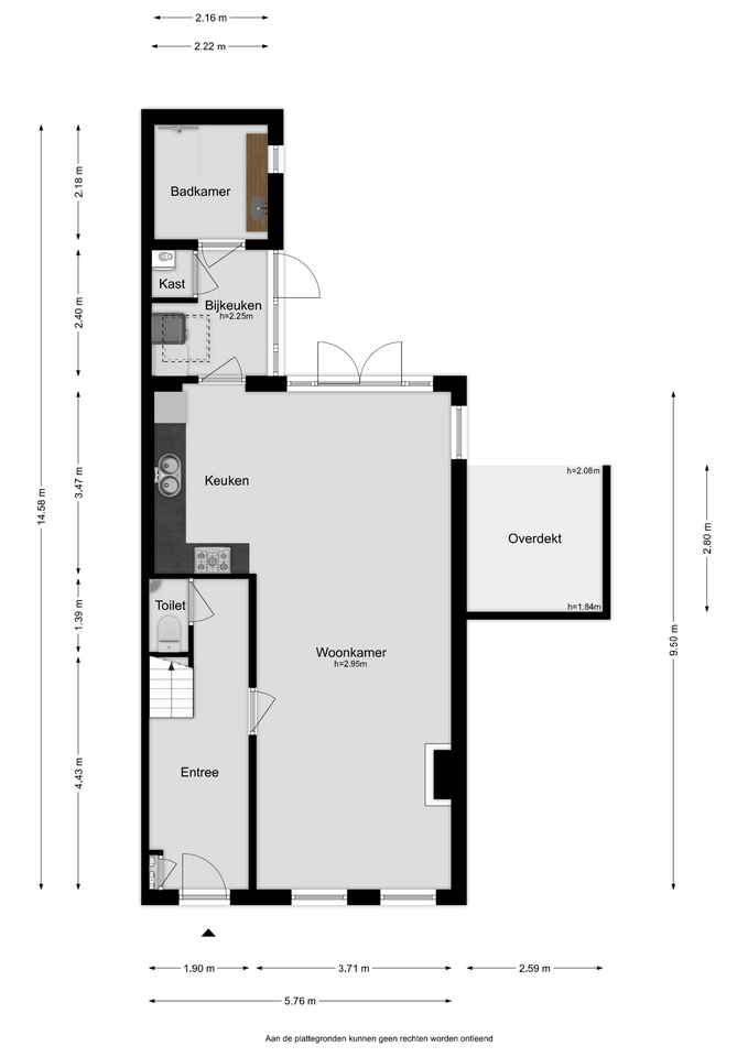 In de aanbouw bevinden zich de bijkeuken en de badkamer. Tevens zijn hier de cv-ketel opstelling en de witgoedaansluitingen. De moderne badkamer is voorzien van een ruime inloopdouche en een badmeubel met een natuurstenen waskom.