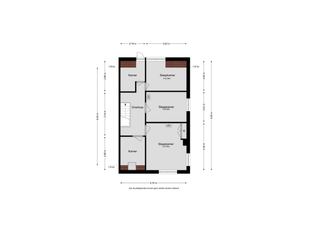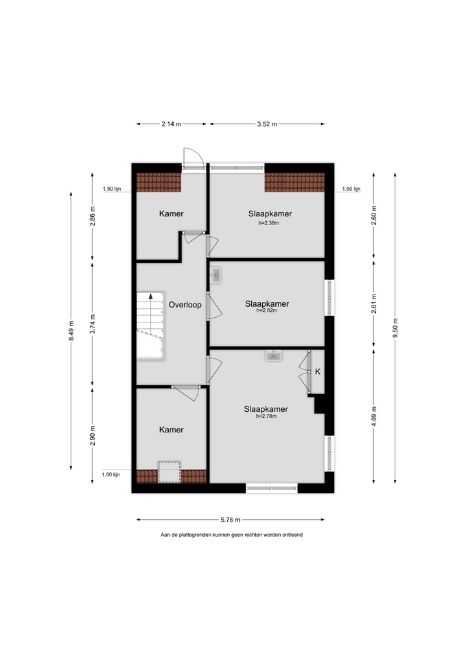 De verdieping beschikt over een centrale overloop en maar liefst 5 slaapkamers, waarvan 3 volwassen kamers en 2 kleinere kamers. Eén van de slaapkamers aan de achterkant van de woning geeft toegang naar het plat dak. Door de recht opgetrokken buitengevels aan de voor- en zijkant, gecombineerd met de grote klassieke ramen, zijn er ruime vertrekken en heeft de verdieping veel lichtinval.