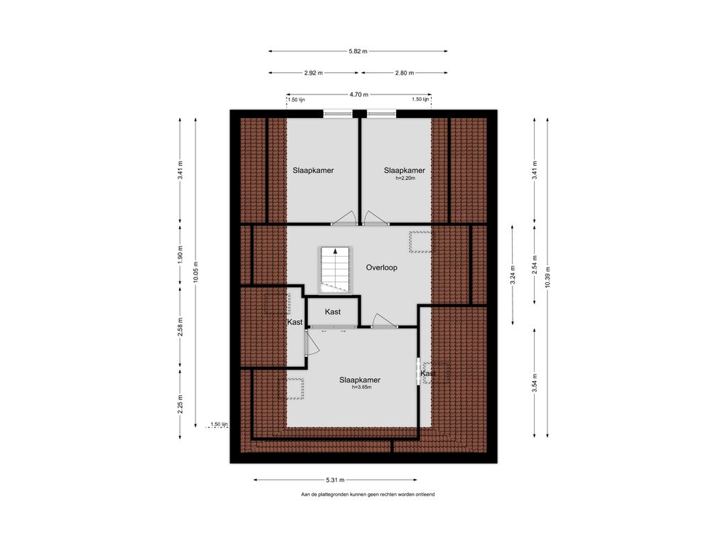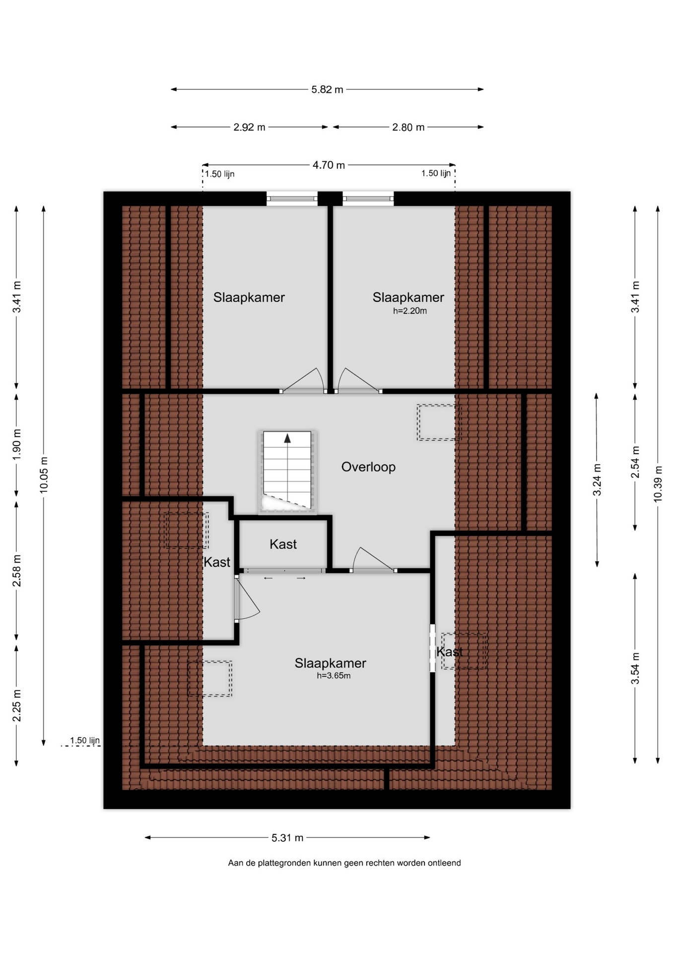De verdieping beschikt over een grote centrale overloop en 3 slaapkamers. Door de ruime afmetingen van de overloop kan hier prima een bureau staan. In de grote slaapkamer zijn de balken zichtbaar gehouden en is er voldoende licht door de 2 grote dakvensters. De ruimte onder het schuine dak is handig verwerkt tot bergkasten.