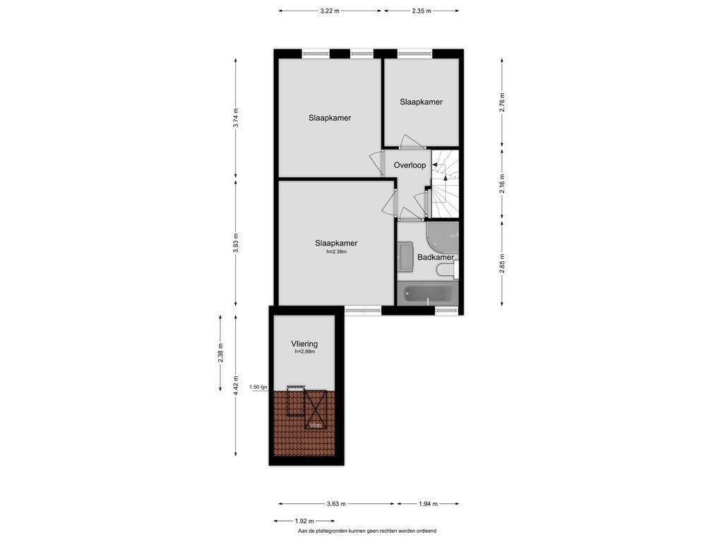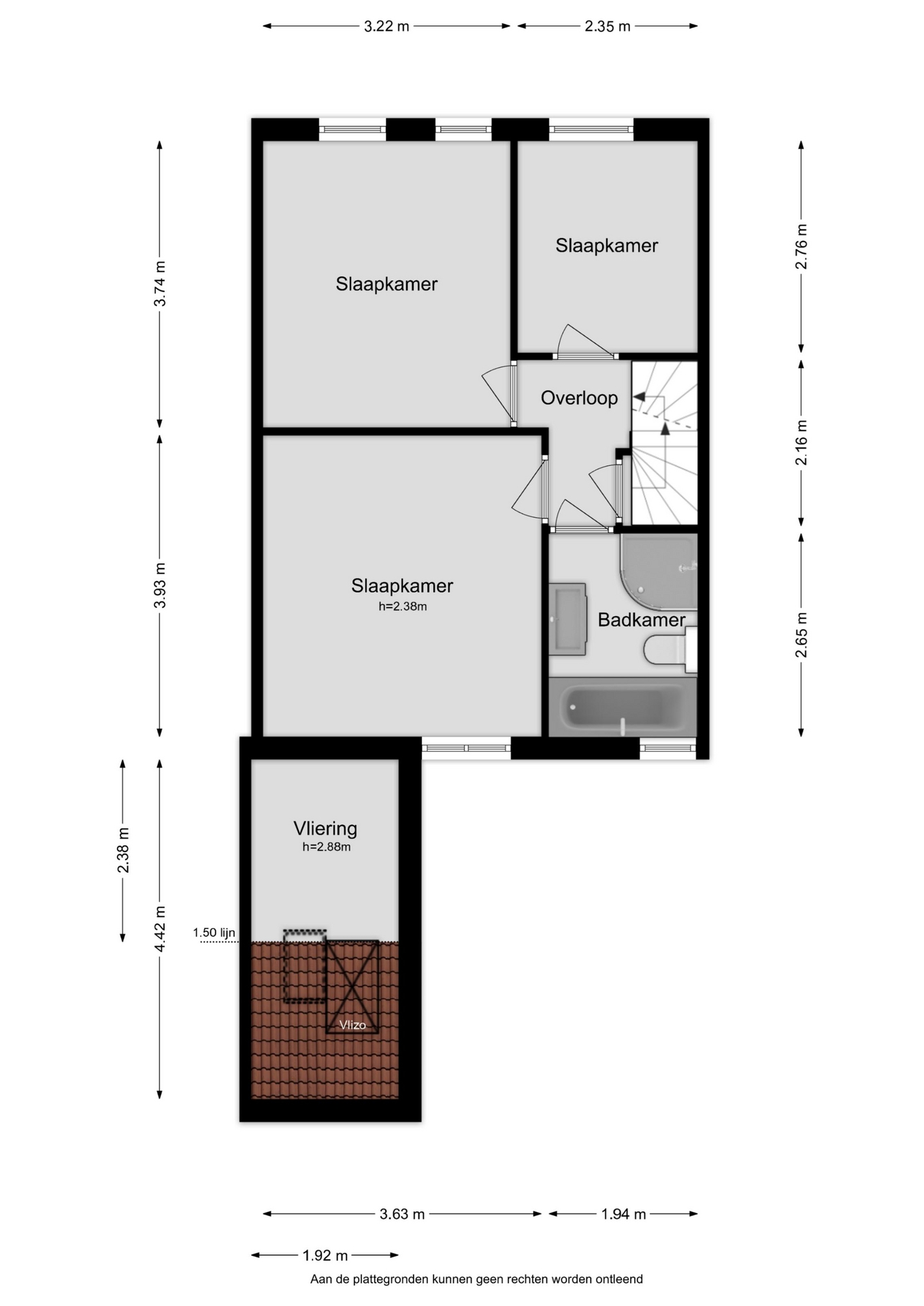 Doordat de woning aan beide zijden rechte gevels heeft, hebben de slaapkamers goede afmetingen. De eerste verdieping beschikt over een overloop, 3 slaapkamers en een badkamer. De gemoderniseerde badkamer is handig ingedeeld en voorzien van een douche, ligbad, 2e toilet en een wastafel.