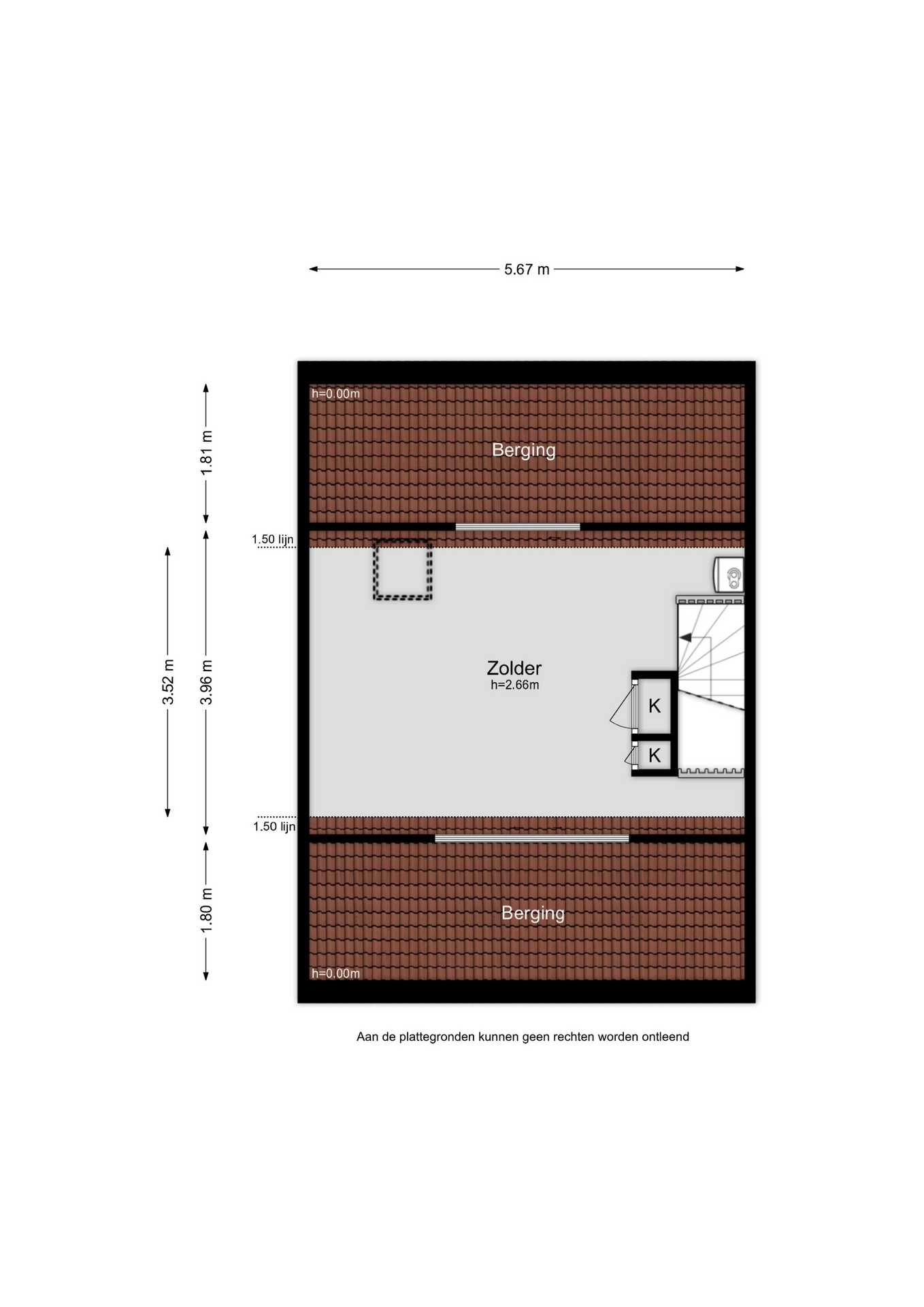 De 2e verdieping is bereikbaar middels een vaste trap en heeft flinke afmetingen. Hier bevinden zich 2 vaste kasten en de cv-installatie. Deze royale zolderruimte kan ook worden gebruikt als 4e slaapkamer.