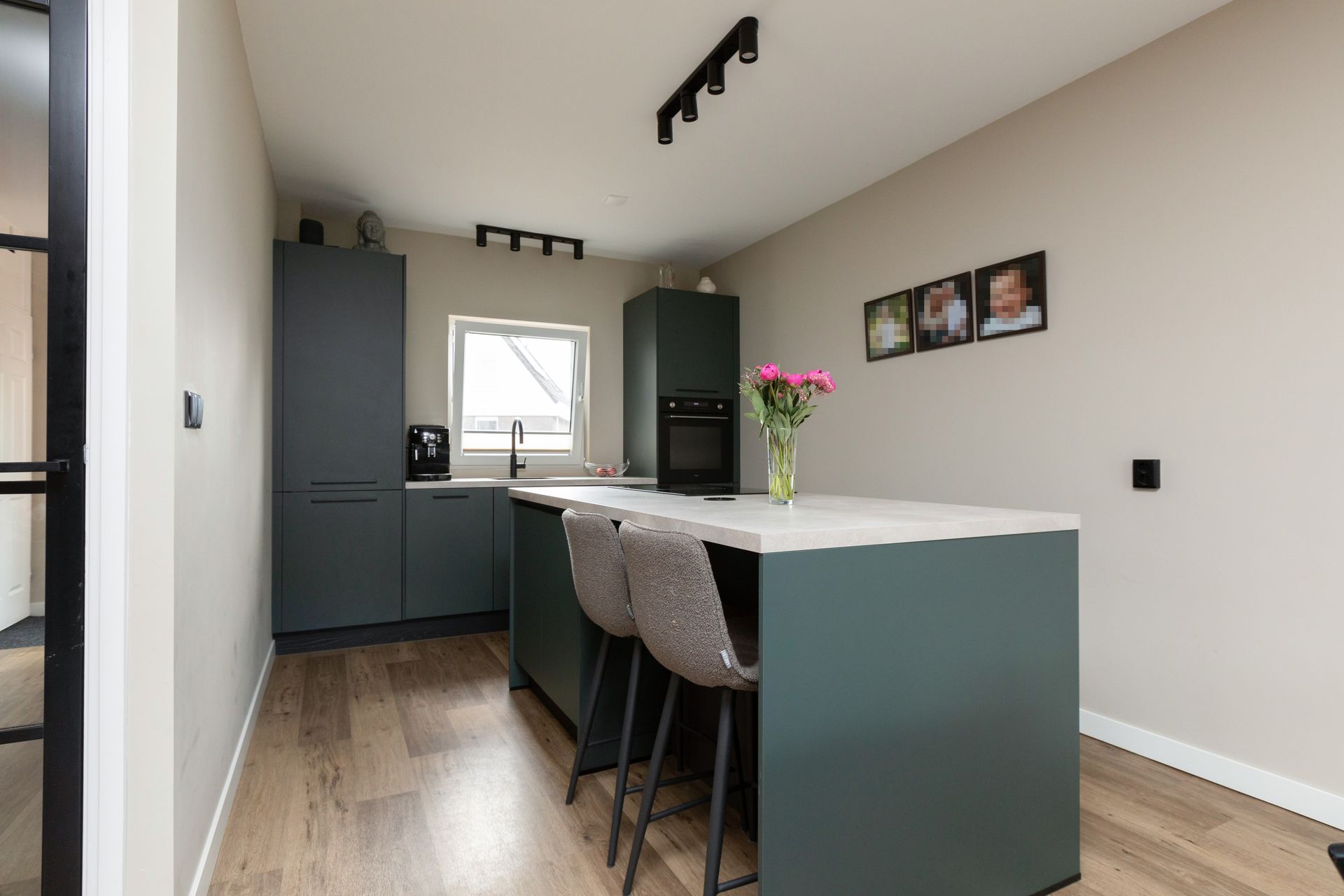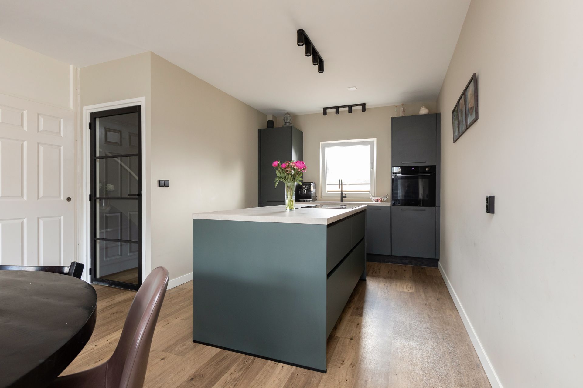 Entree, hal, meterkast, toilet en trapopgang. De royale woonkamer is aan de achterzijde gesitueerd en heeft een grote schuipui naar het achterliggende terras. De kamer is strak afgewerkt en uitgevoerd in moderne kleurstellingen. De moderne keuken is aan de voorzijde geplaatst en beschikt over diverse inbouwapparatuur. De bijkeuken is bereikbaar vanuit de hal en biedt voldoende ruimte voor de plaatsing van witgoedapparatuur.