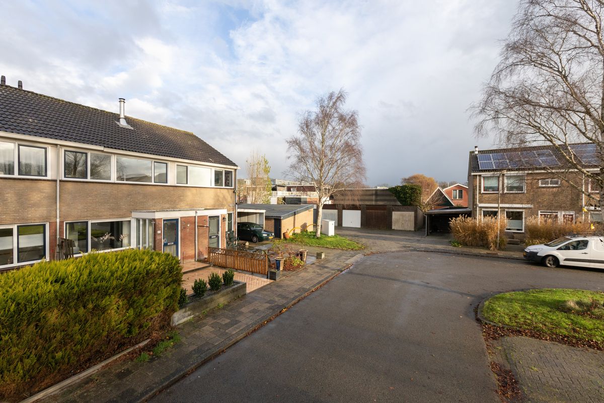 De voortuin met terras en verhoogde borderbakken is op het zuidoosten gelegen. De onderhoudsvriendelijke achtertuin heeft een ligging op het noordwesten en is voorzien van een bergschuur en een achterom via de achtergelegen steeg.