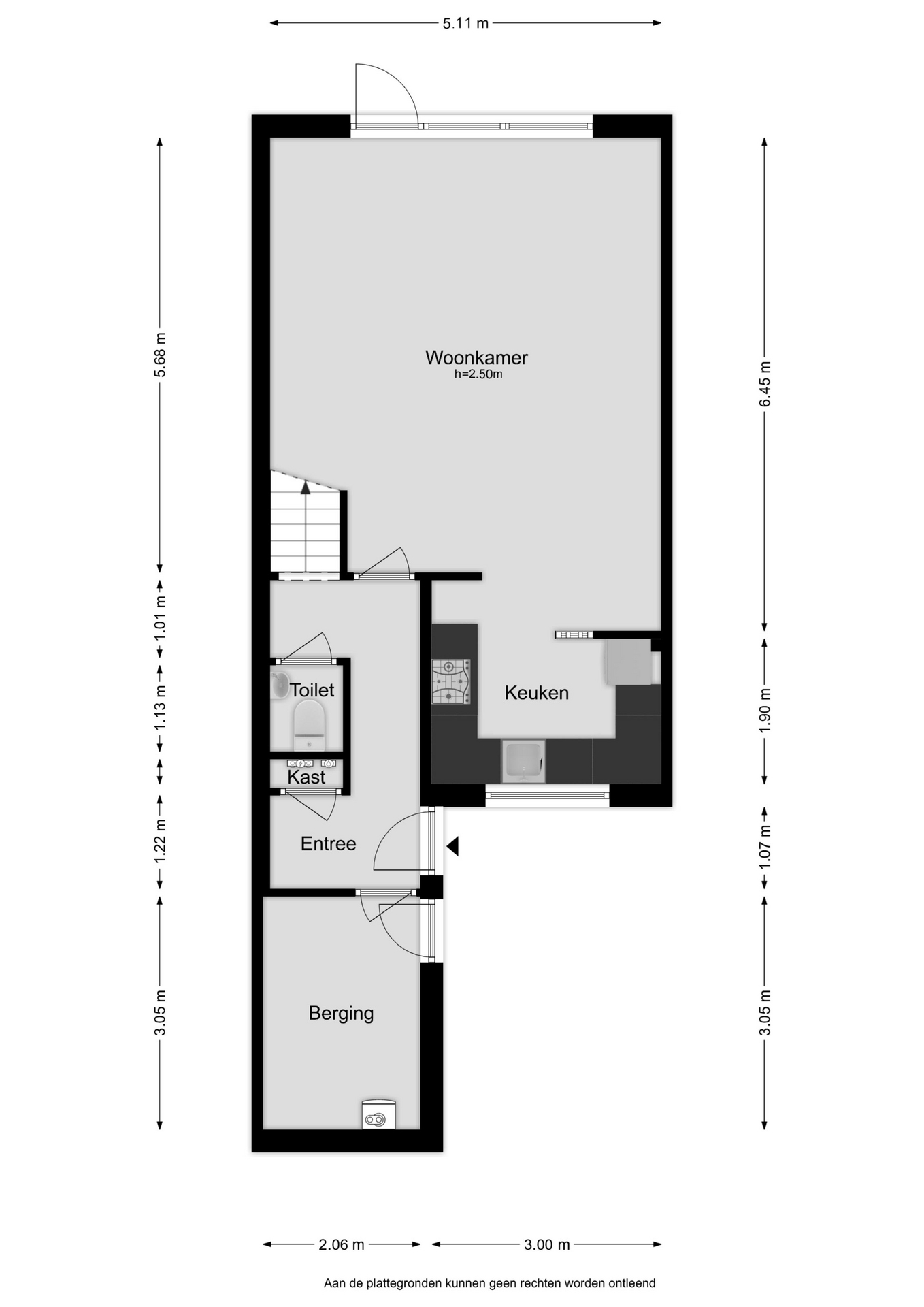 Entree, hal, meterkast, toilet en trapopgang. De ruime tuingerichte woonkamer heeft een deur naar het terras in de achtertuin. De open keuken beschikt over diverse inbouwapparatuur. De U-vorm keukenopstelling biedt veel berg- en werkruimte. In de praktische bijkeuken bevinden zich de witgoedaansluitingen en de cv-opstelling. De voortuin is op het zuiden gelegen en kijkt uit op het plein en parkeergelegenheid. Daarnaast beschikt het over een kunststof berging. De beschutte achtertuin heeft een zonligging op het noorden en is voorzien van sierbestrating en een houten bergschuur.
