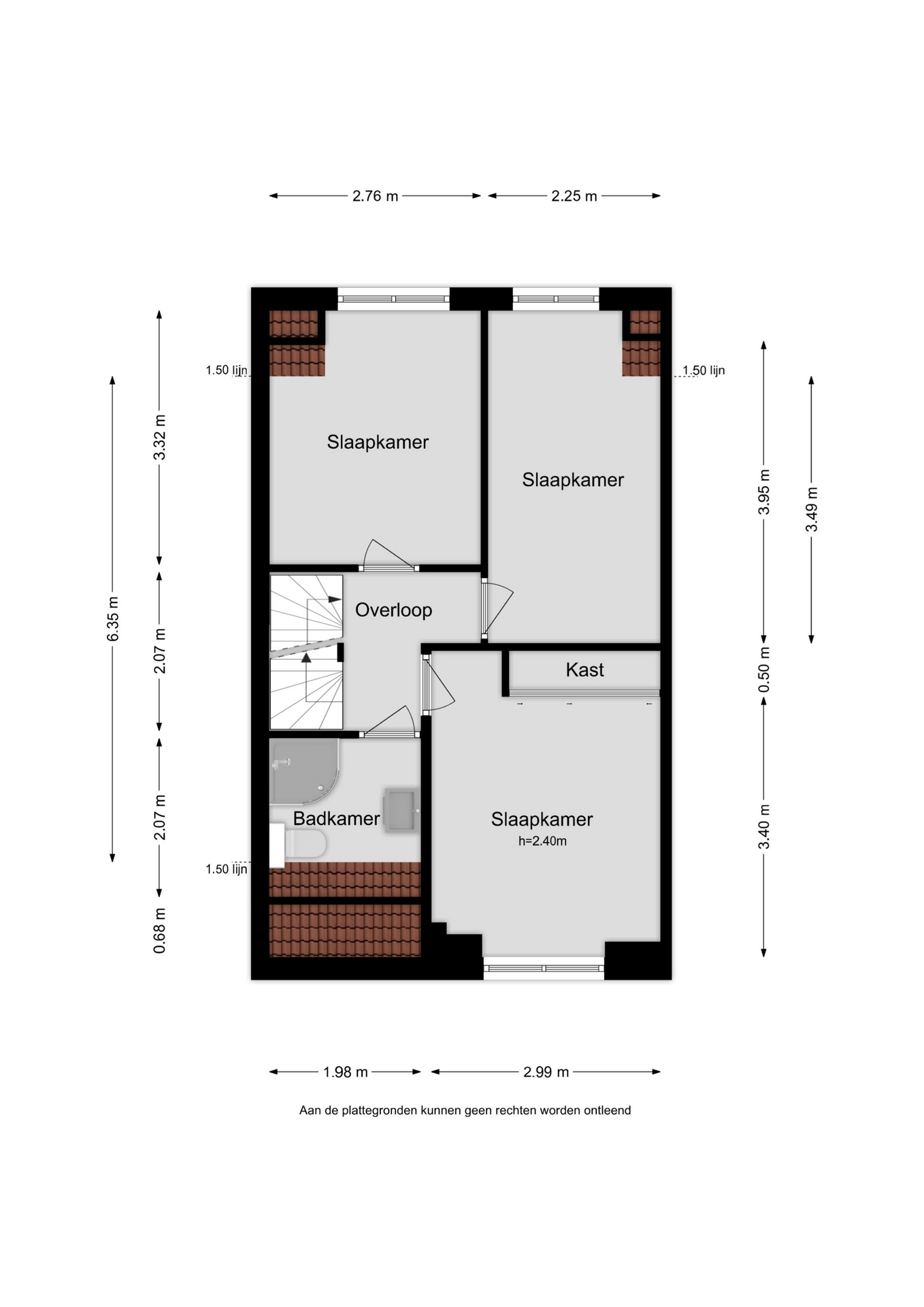 Doordat de woning aan beide zijden over een dakkapel beschikt, hebben de slaapkamers praktische afmetingen. De eerste verdieping beschikt over 3 slaapkamers met lichte kleurstellingen. De ouderslaapkamer is voorzien van een inbouwkast. De badkamer is handig ingedeeld met een douche, 2e toilet en wastafel.